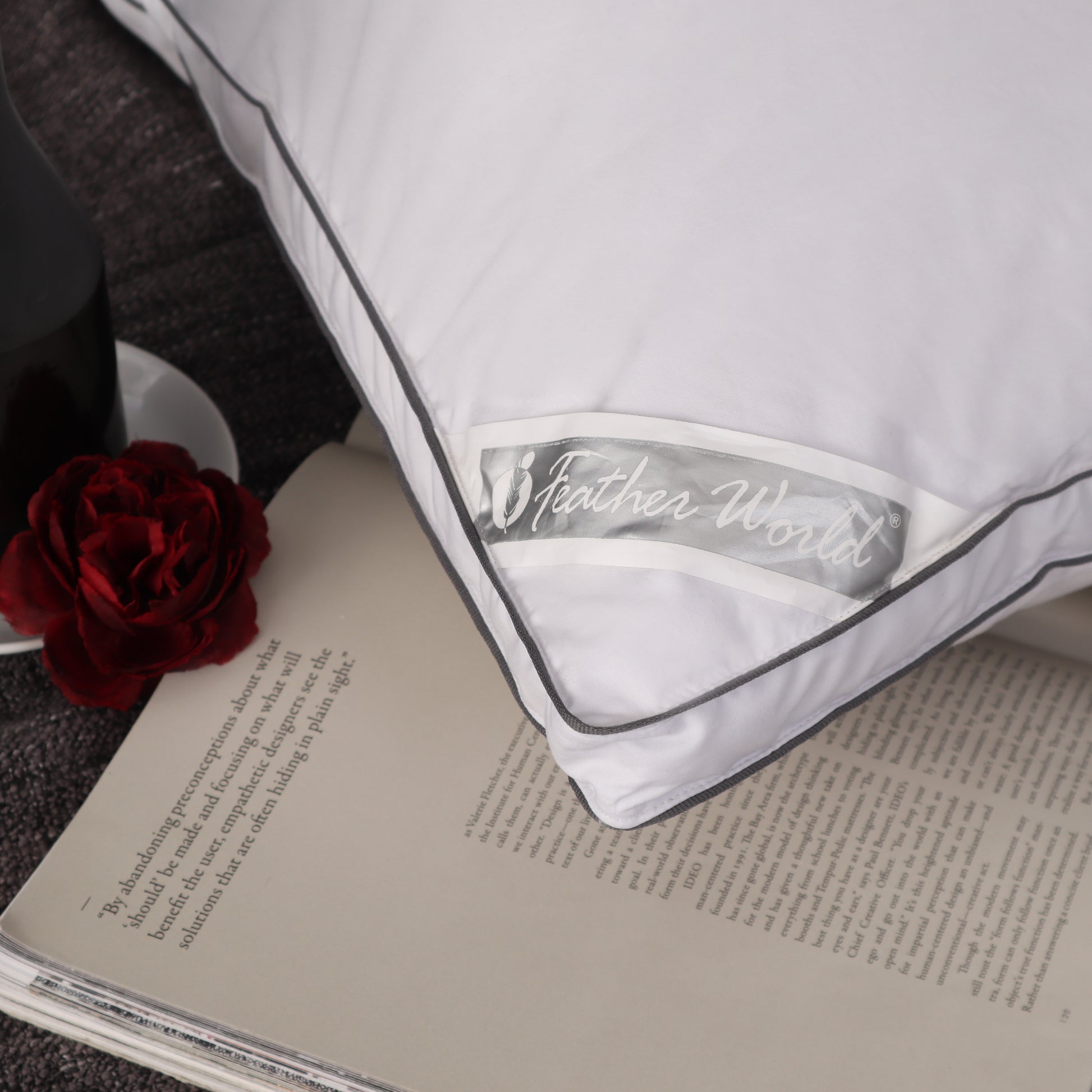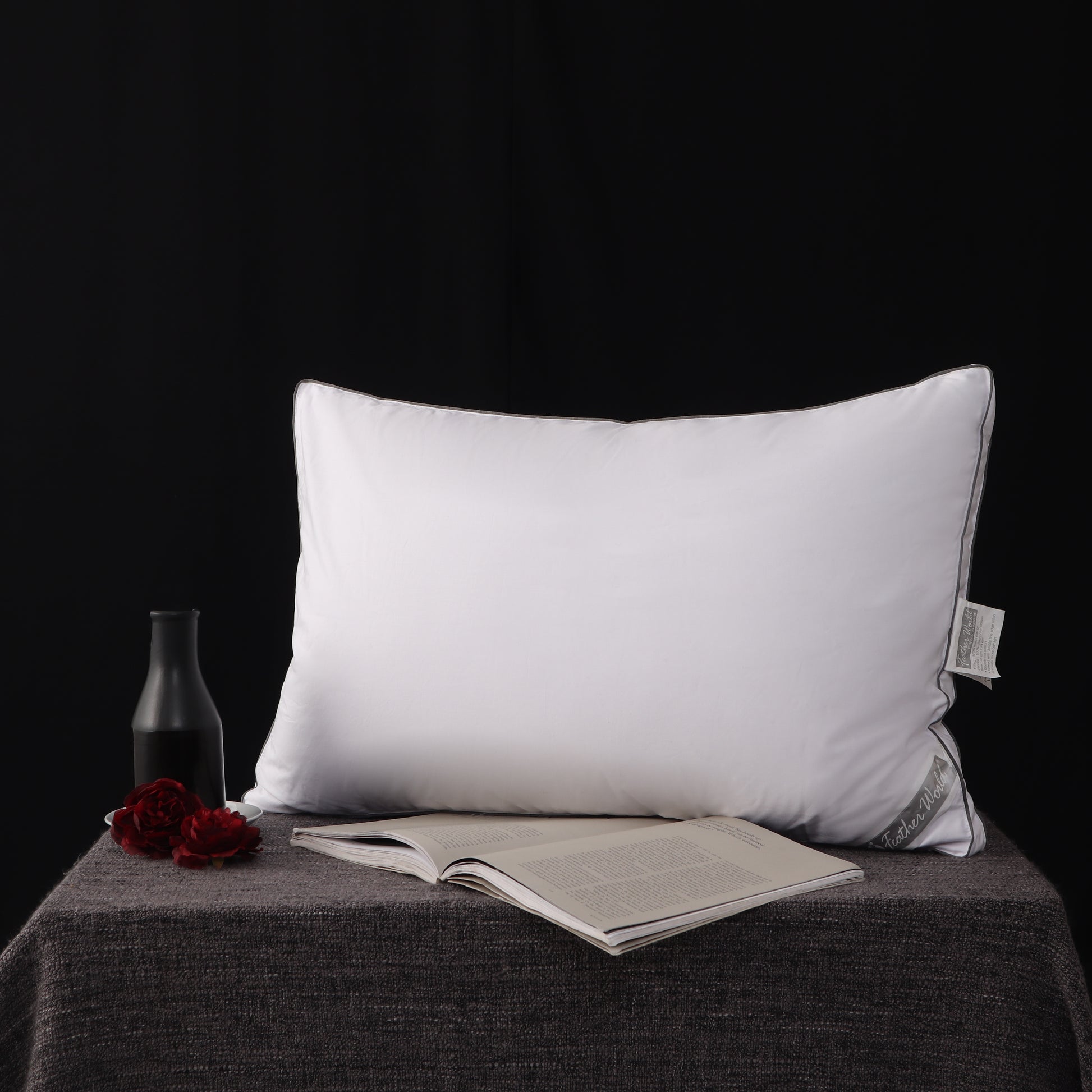 Bantal bulu angsa 100% Down ini ideal bagi konsumen yang mencari produk dengan kualitas tertinggi, keempukan superior, dan kemampuan mengembang maximum loft yang cepat. Produk ini sering menjadi pilihan utama untuk kamar tidur presidential suite di hotel bintang tujuh.