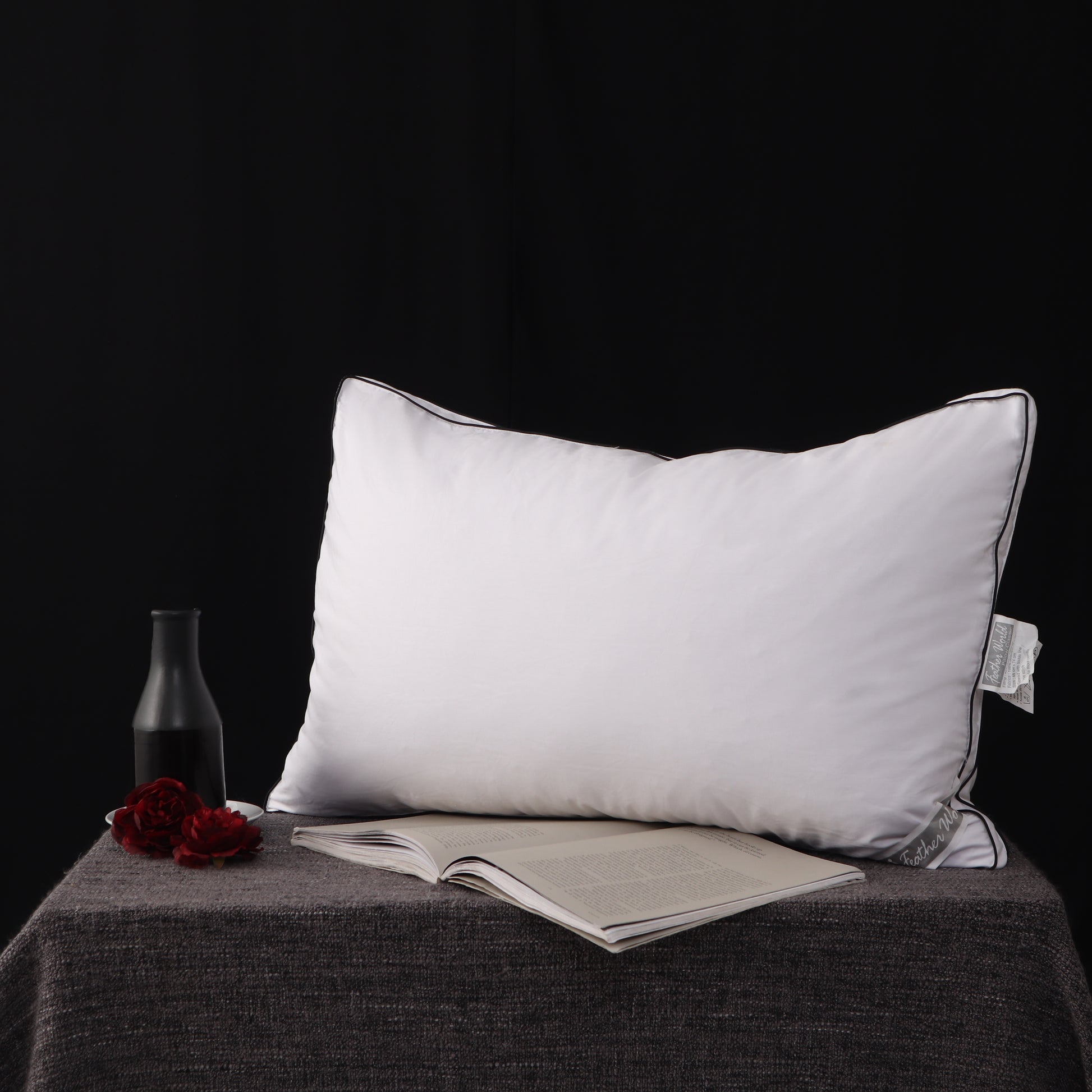 Bantal bulu angsa premium ini menawarkan kenyamanan dan dukungan maksimal untuk meningkatkan kualitas tidur. Bantal ini diformulasikan dengan 40% Down (Bulu Halus Angsa), memberikan kelembutan tingkat tinggi (Smoothness Level 400%) yang ideal untuk penopangan kepala dan leher yang lembut. Bantal ini cocok digunakan untuk penggunaan pribadi atau sebagai perlengkapan di hotel-hotel mewah, memberikan sensasi tidur yang sebanding dengan standar hotel bintang lima.